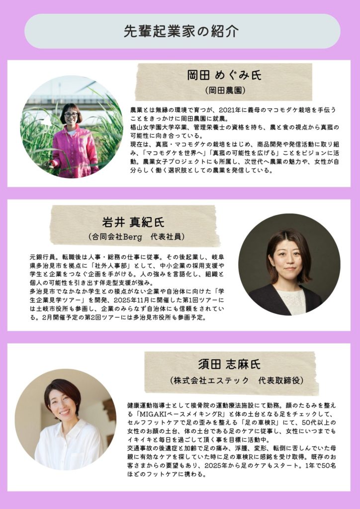 同じ起業という目標をもった仲間とつながり、先輩女性起業家にも実体験をまじえてメンタリングしていただける交流会です。
